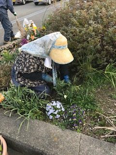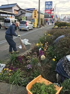 今日は早朝から蟹江町シルバ-人材センタ-さんのおじさんとおばさんが会社前の花壇の草むしりとお花のお手入れに来てくださっています。